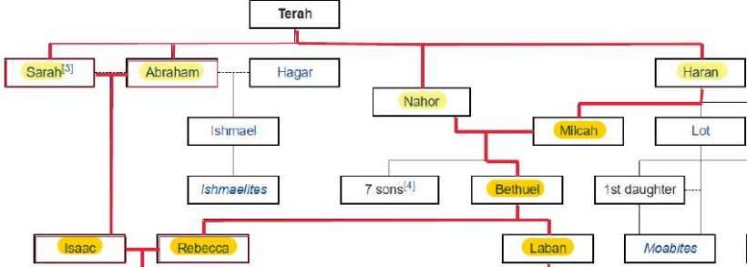 The following graphic shows the inter-relationships of the children of Terah coming together in the marriage of Isaac and Rebecca: