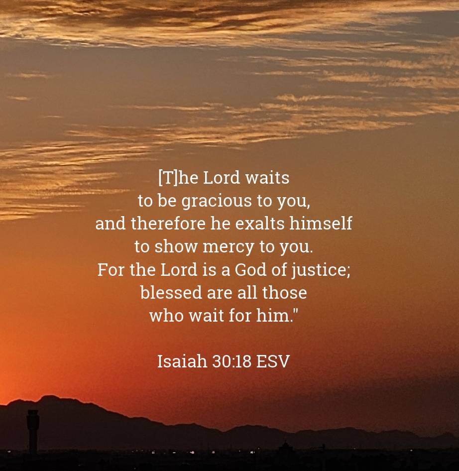 So, God waits patiently, withholding His judgment – withholding ultimate justice. He does this because He desires that none would perish, that all would turn to him and be saved. He waits to be gracious to us.